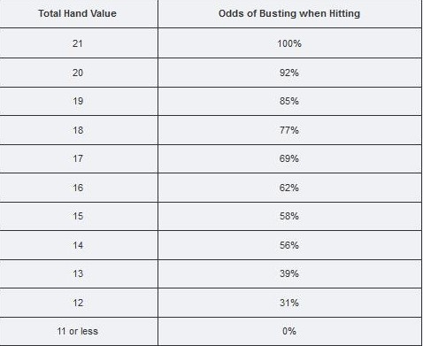 Каждый игрок должен понимать, какой у него риск перебора. Это значение зависит от текущей руки. Зная это, вы сможете сделать правильный выбор и победить даже тогда, когда эта вероятность не столь высока.