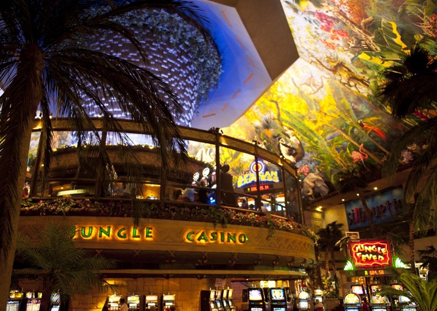 Экстравагантный Сан Сити Ресорт расположен в Южной Африке, рядом с Национальным парком Пиланесберг. Казино Сан Сити предлагает все разнообразие азартных игр. Здесь представлены и комнаты для игр с высокими ставками и множество слот-машин для тех, кто хочет испытать удачу за небольшие деньги. Кроме того, отель предоставляет бесплатные уроки Покера и Блэкджека. Если вы не хотите тратить весь свой отпуск, играя в слоты, то можно оседлать искусственные волны в аквапарка, поиграть на одном из двух полей для гольфа или совершить романтический полет на воздушном шаре.