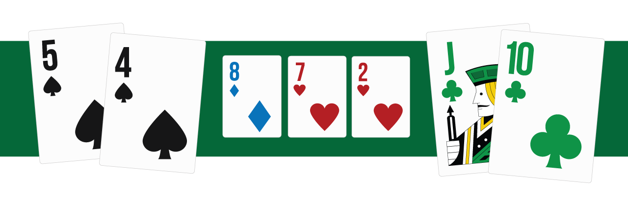 Присутствие пары оверкарт и «дырявых» стритов являются неплохими дро, если Вы хотите сложить наилучший возможный вариант стрита. Например: