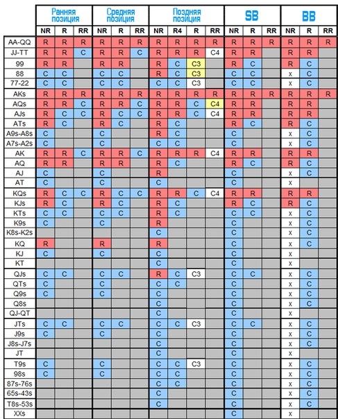 Распечатайте ее и впишите туда все руки, которые Вы имеете возможность разыграть, находясь в каждой конкретной ситуации.