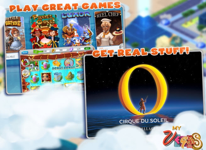 Одна из игр myVEGAS Slots по факту является виртуальной игрой такого же типа как в казино, но здесь пользователи выигрывают не деньги, а призы, которые предоставляют партнерские игорные компании. Среди партнеров, например, есть Bellagio и MGM Grand. Игра была разработана в 2011 году. Её разработчик PlayStudios занимается социальными гемблинг-играми, и, как видите, довольно успешно. В игру во всем мире играют 56 миллионов пользователей, а выручка одного дня превысила 70 тысяч долларов (данные 2014 года). Принцип игры схож с реальным казино, и игрок также приобретает фишки, чтобы приступить к игре. За набор фишек пользователь может заплатить максимально 99,99 долларов. В частности, MGM Grand предлагает победителям бесплатные номера в гостинице Лас-Вегаса и другие подобные призы, которые, похоже, очень хотят заполучить пользователи, иначе бы игра не была столь популярной.