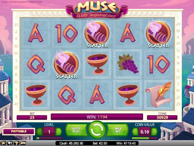 Muse это пяти барабанный не прогрессивный игровой слот с 25-ю линиями выплат от компании Net Entertainment. У слота есть дикий символ, множитель, рассыпной символ, бесплатные вращения, а максимальный джек-пот составляет $5,000.