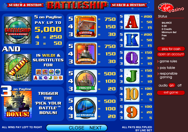 Battleship - Search and Destroy это пятибарабанный, непрогрессивный слот от компании Wagerworks. В игре есть дикий символ, а максимальный джек-пот составляет $25,000.