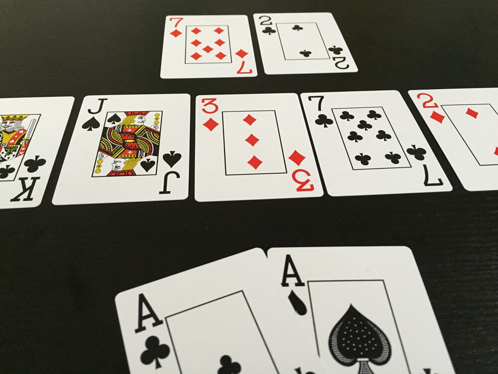 Например, у вас стартовая рука состоящая из пары королей или пары тузов, или короля и туза. Как правило, большинство игроков сразу предпочитают ставить all-in, а это большая ошибка, так как риск, что вас обыграют сетом, флэшем или стритом составляет 50%.