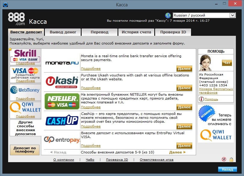 Не так давно к списку платежных систем, которые поддерживает 888 Poker, присоединилась система платежей WebMoney, которую так сильно любят отечественные игроки.