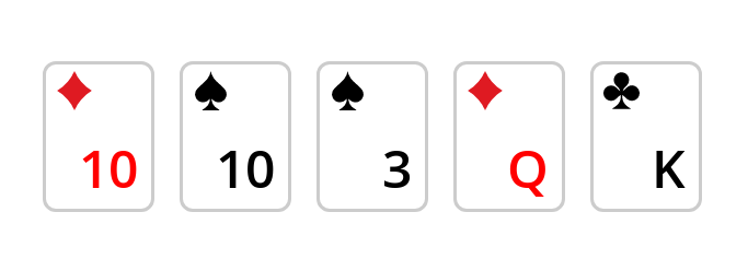 Дабл - это две карты одного достоинства плюс три самые крупные карты разных достоинств. Эта комбинация может быть составлена тремя способами: