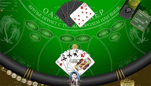 Общее описание игры Оазис Покер очень просто и незатейливо. Принцип ее состоит в том, чтобы игрок, на свой страх и риск, принял решение, что ему делать с картами. Да, звучит несколько смешно, но это именно так.