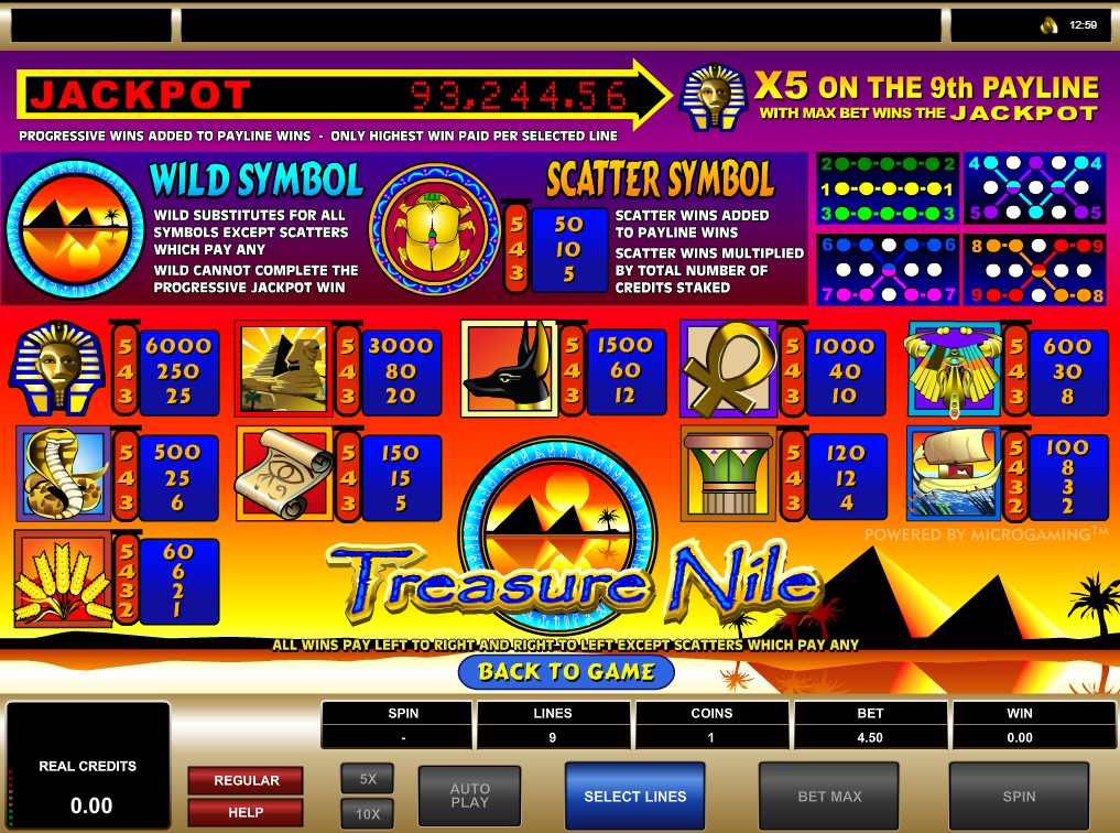 Идея и дизайн самой игры в автомате Treasure Nile отправляет игроков к временам древнейших пирамид, папирусов, раритетных рукописей и сфинксов.