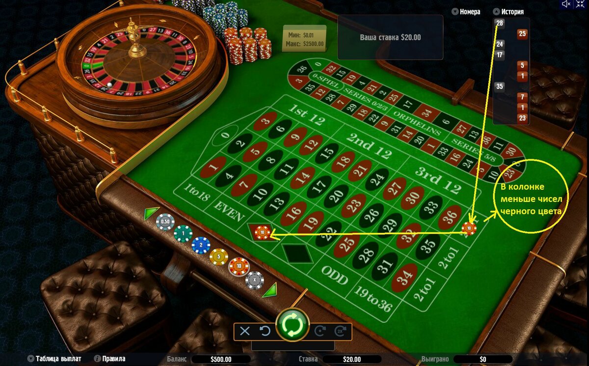 Например, это правило на «равные шансы»: в случае, если выпадает зеро, ставка остается «в заключении» на поле.