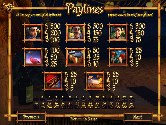 Онлайн слот «At The Copa» оснащен пятью барабанами и тридцатью игровыми линиями, а также трех уровневым джекпотом.