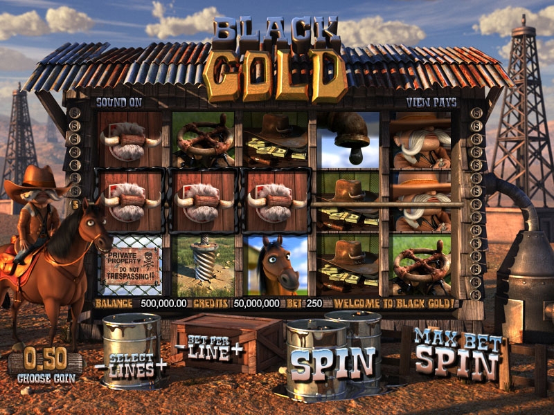 Вместе с игровым автоматом под названием «Черное золото» вы отправитесь на Дикий Запад тех времен, когда нефтяная лихорадка охватила всю Америку. Подбадривать игрока во время неудач, радоваться его победам, давать ценные советы будет настоящий ковбой из Техаса с длинными усами и в черной шляпе.