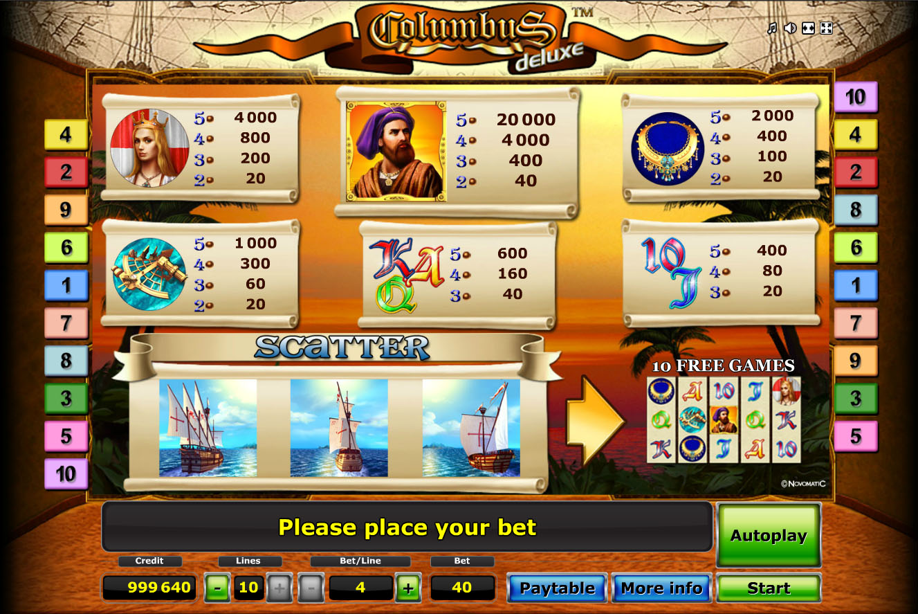Романтика путешествий завоевала не один миллион сердец любителей азартных игр и игровых автоматов, сделав из Columbus Deluxe наиболее узнаваемый слот. Попробуйте, вам понравится!