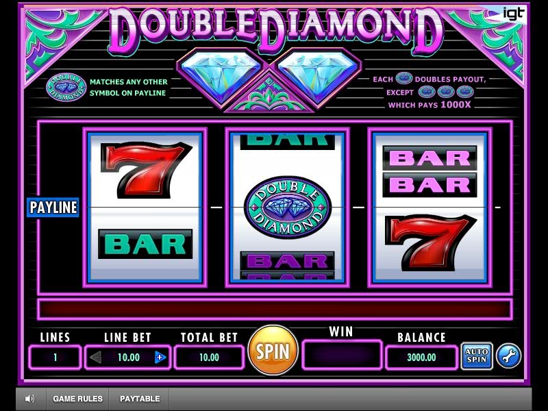 Игровой автомат под названием «Double Diamond», представленный компанией-разработчиком IGT, увидел свет в конце девяностых годов прошлого века. Он представляет собой традиционный во всех пониманиях слот с символами в виде трех семерок, карт, «Bar» и иных знакомых всем изображений. Наиболее интересным символом здесь является сияющий бриллиант, основной «функцией» которого будет удваивание изначальной ставки. Символы игрового автомата Double Diamond традиционны для многих слотов.