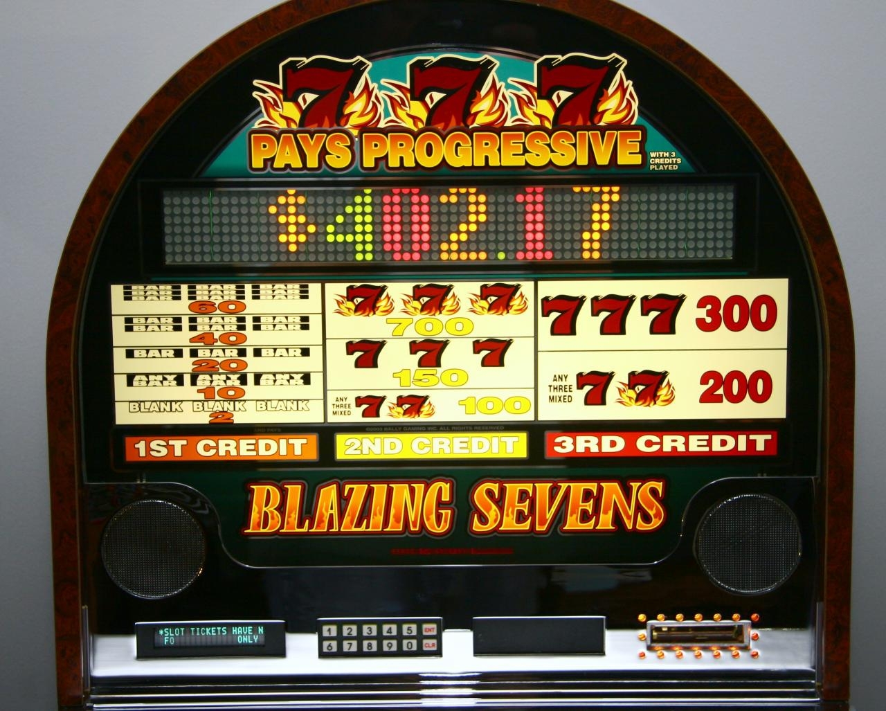 «Сверкающие семерки» («Blazing Sevens») – это гейминатор, разработанный компанией «Bally», который по сей день пользуется невероятной популярностью среди игроков. Представленный игровой автомат – это традиционный однорукий бандит, состоящих из трех барабанов. Но при этом главной его изюминкой является наличие прогрессивного джек-пота, увеличивающегося с каждым новым вращением. Минимальная ставка в «Blazing Sevens» составляет один доллар.