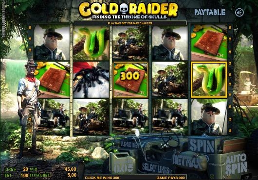Малахитовые змеи, озлобленные мартышки, мохнатые пауки и также жаждущие золота вьетконговцы – далеко не все преграды, встречающиеся на пути у Золотоискателя в игровом автомате Gold Raider.