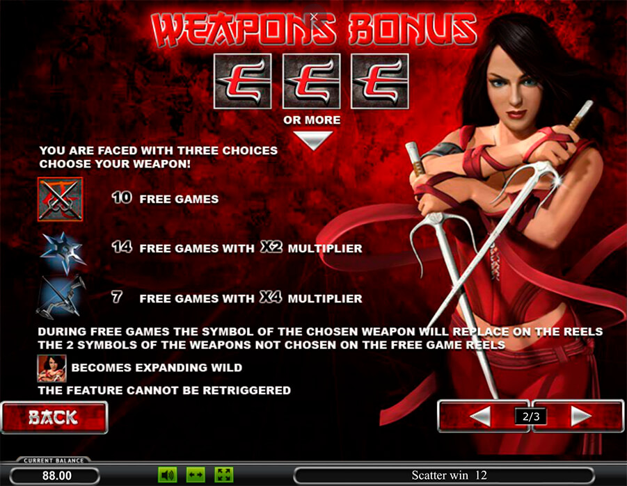Символ Scatter – это изображение японского оружия, меча с тремя лезвиями. С таким оружием чаще всего появлялась Электра в комиксах Marvel.