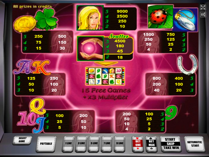 Бонусный символ выглядит в виде «шара судьбы», и поймать этот «рассыпной» символ необходимо не менее трех раз, при этом независимо от места расположения на игровом поле.