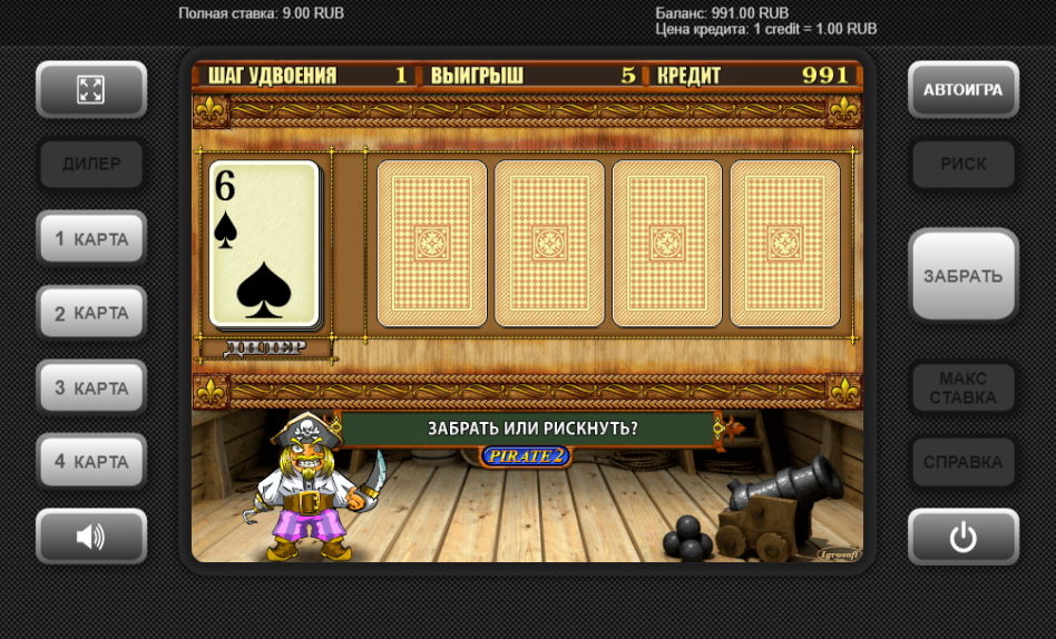 Если вы авантюрная натура и хотите приключений и странствий, охотясь за таинственными сокровищами, не медлите и отправляйтесь в путешествие на поиски главного приза слота Pirate в 187,5 тысяч кредитов.