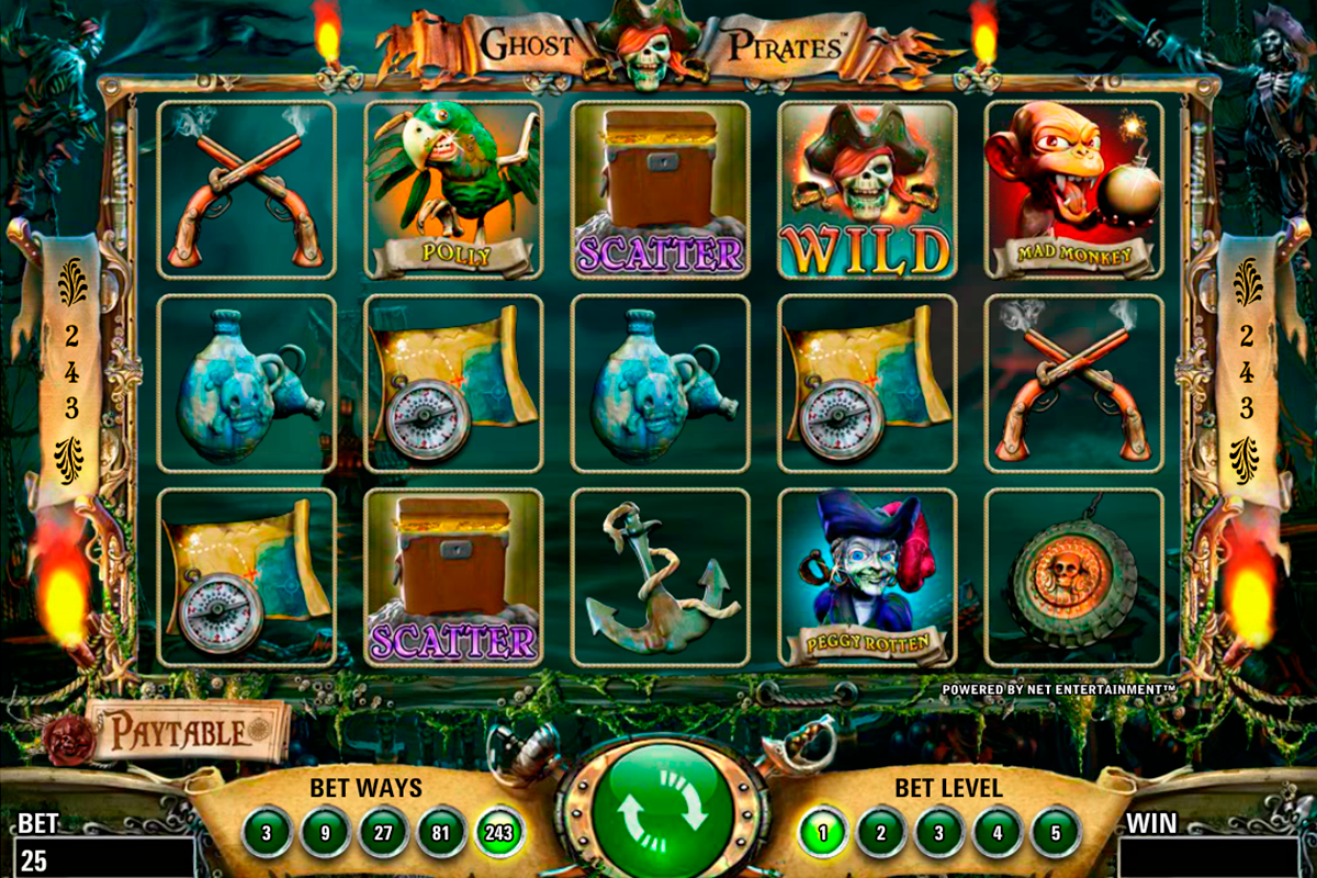 Теперь у всех желающих появилась отличная возможность попасть в таинственный мир авантюрных секретов и ценных сокровищ играя на слоте под названием Ghost Pirates.