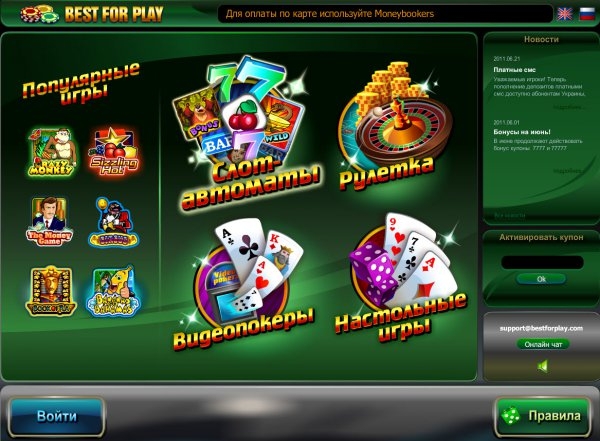 Онлайн-казино «Best For Play» предназначено специально для категории гемблеров предпочитающих игровые автоматы.
