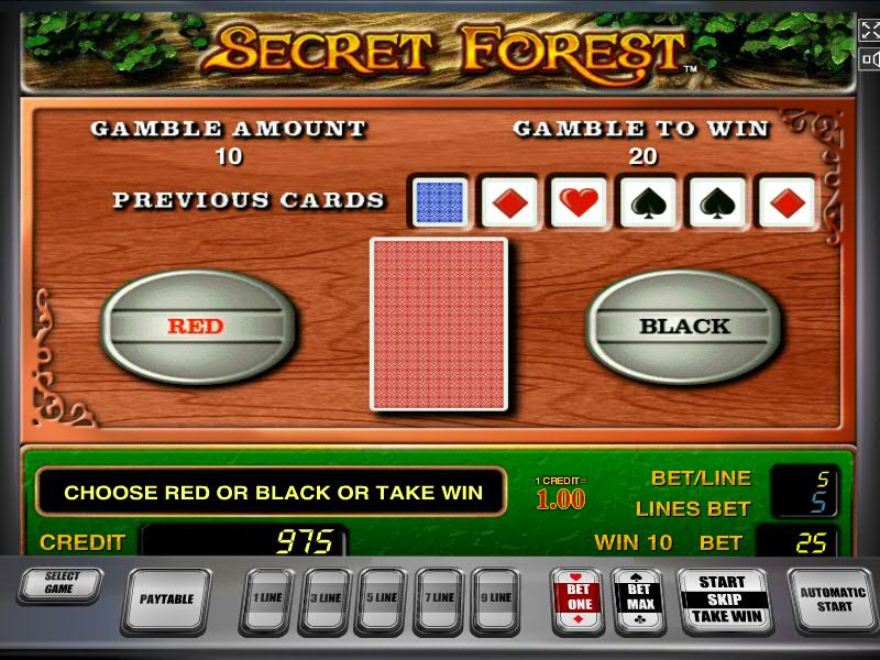 Когда в основной игре у вас выпала выигрышная комбинация, можно запустить игру на удвоение выигрыша.Тогда станет доступна игра, в которой нужно отгадать цвет карты, красная или черная. Все просто, а выигрыши растут!