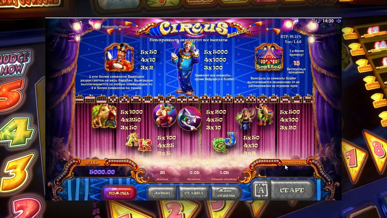 Цирк не только подарит Вам массу положительных эмоций, но и возможность выиграть крупную сумму, ведь коэффициент выплат может увеличится до 95%.