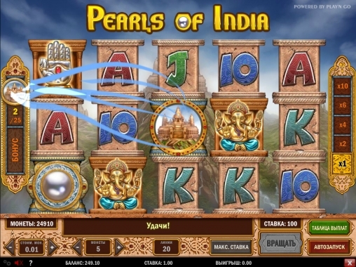 Предлагаем вашему вниманию общее описание слота Жемчужины Индии. Данный игровой автомат порадует клиента виртуального казино не только красочной графикой, но еще и внушительным джек-потом, сумма которого достигает миллиона монет и десятикратным множителем. Дисперсия средняя, а процент отдачи достигает отметки в 96,87%.