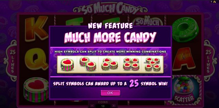 И на десерт – последняя игра трилогии So much candy (Очень много леденцов), в которой сладкоежкам предложат леденцы с разными вкусами. А разбросанный символ представлен в виде целого автомата с разноцветными леденцами. Во время выигрыша конфетки прыгают и вращаются в большом прозрачном контейнере.