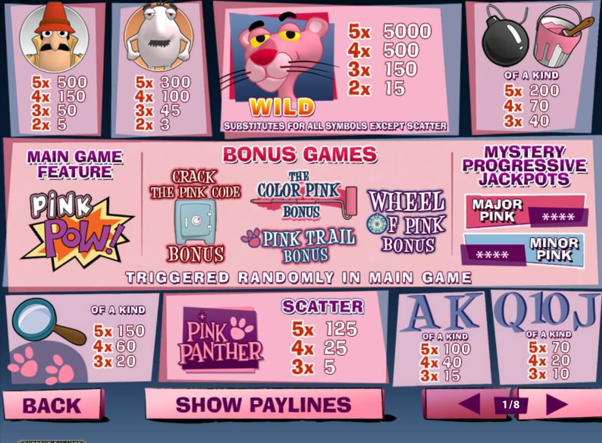 Итак, розовая пантера возвращается теперь на барабанах видео слота. Напомним, что этот персонаж является главным героем комедийных мультфильмов и телепрограмм, которые идут с 1963 года.