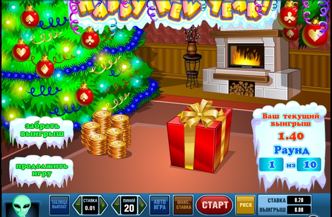 Бонусная игра гарантирует хороший гонорар. Для ее запуска необходимо наличие не менее трех новогодних елочек на игровом поле.