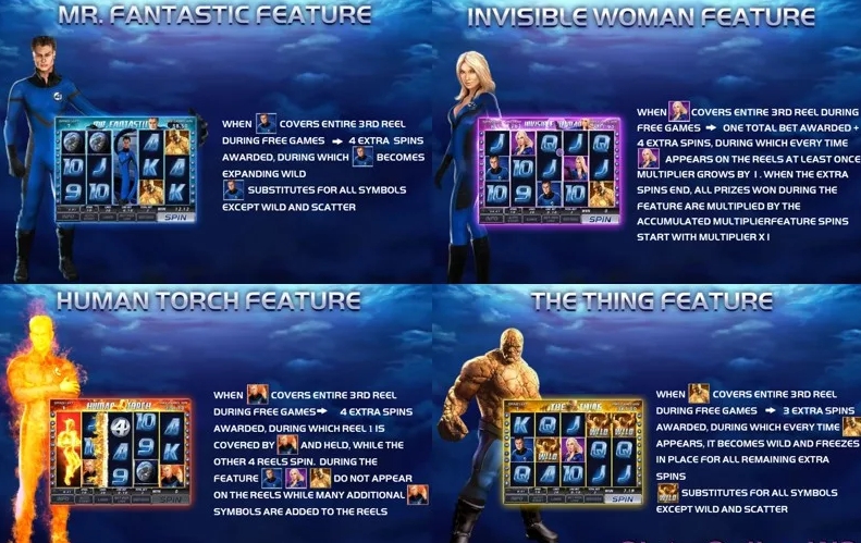 Как упоминалось выше написанным, игровой автомат Fantastis Four имеет специальные функциональные различия, которые позволяют легко развлечься игрокам и развлекаясь, получить крупное вознаграждение.