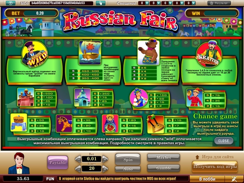 Давно ли вы бывали на русской ярмарке? Такой шанс вам предоставляет интернет-казино SLAVA, предлагая один из самых интересных игровых автоматов в своей коллекции – RussianFair.