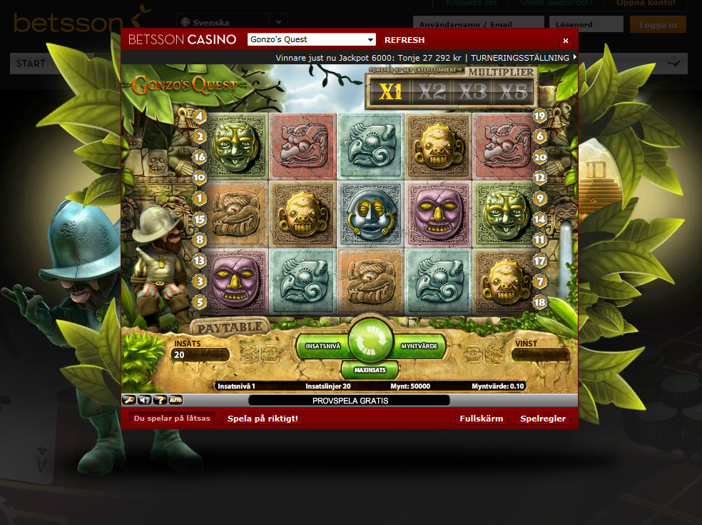 Новый пятибарабанный 3D слот от компании Net Entertainment под названием «Квест Гонзо» имеет функцию каскадных барабанов. Эта особенность помогает создавать гораздо больше выигрышных серий, чем в обычных игровых автоматах. Выгодным для игрока этот эмулятор делает наличие в нем дикого символа и бонусного раунда «free falls». Начинается игра с небольшого вступительного ролика, в котором покажут, как свой корабль снаряжают испанские первооткрыватели. После этого Гонзало Писсаро вместе со своей командой отправится на поиски несметных сокровищ у таинственных берегов.