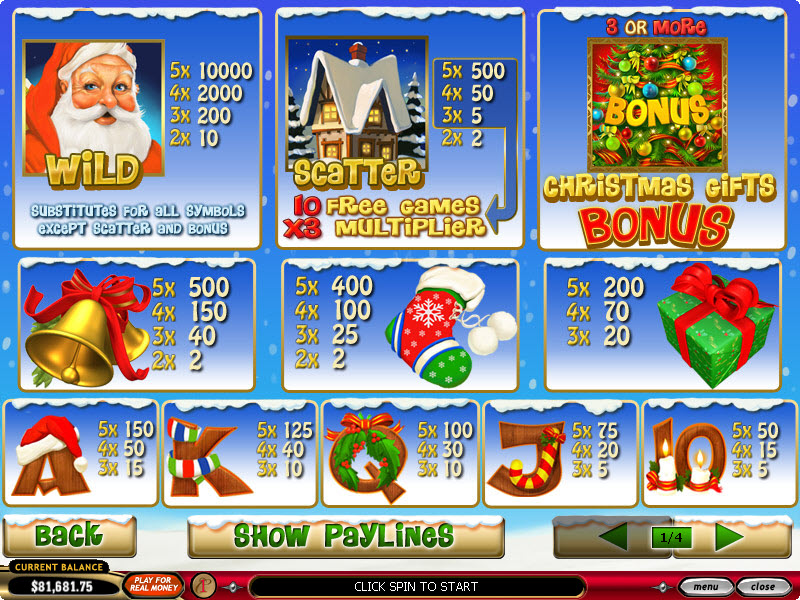 Рождественский видеослот имеет пять барабанов и двадцать линий выплат.