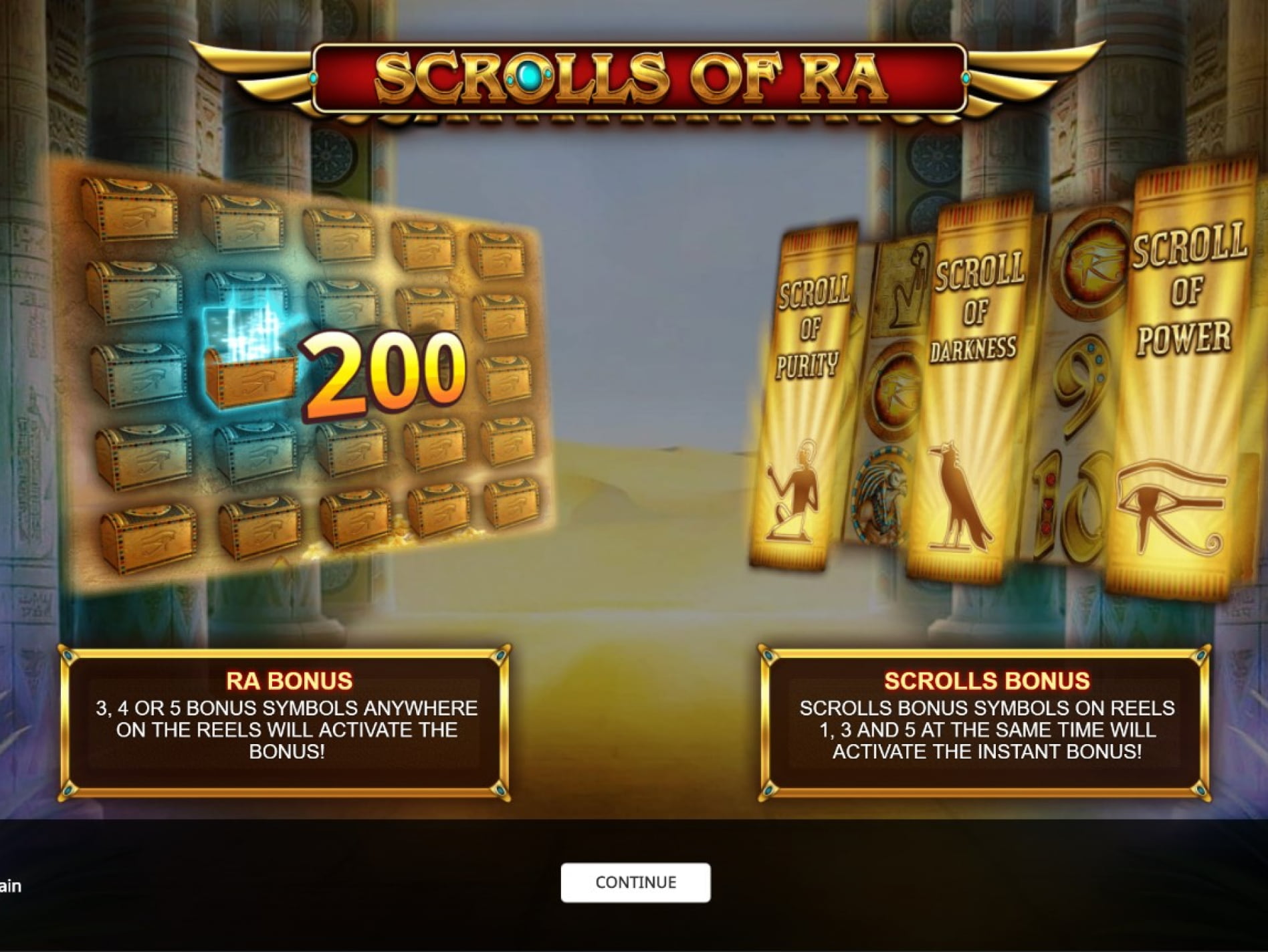 Если вы любитель Древнего Египта, то игровой автомат Scrolls Of Ra идеально для вас подходит. Среди символов можно заметить связанные с той эпохой предметы такие как: