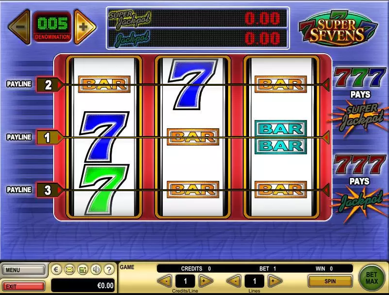 В Super Sevens всего три барабана и три линии выплат. Основная особенность и уникальность как раз заключается в том, что это видеослот достаточно прост.