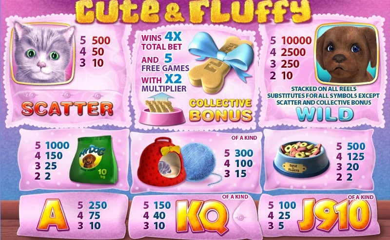 Любая дама сможет получить свою дозу умиления при появлении на экране монитора умиляющего изображения щенков и котят. Подобные герои порадуют каждую женщину, если пробовать свои силы в слоте «Cute and Fluffy». Такой полностью русифицированный симулятор, разработанный компанией «Playtech», отличается превосходной графикой. В игре имеется немалое количество функций, а также можно не волноваться за удобство управления, так как это является еще одним положительным дополнением, которое составляет лишь хорошее впечатление от развлечения. При желании все достоинства этого предложения можно оценить самостоятельно!