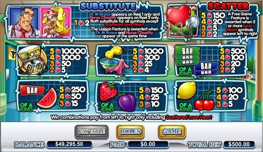 Главного героя слота зовут так же, как и название этой игры. Молодой человек обладает притягательной внешностью, которая может очаровать каждую девушку и женщину. Dr. M. Brace работает не один. Ему помогает сексапильная ассистентка, помогающая реанимировать гемблеров. Если у вас возникли проблемы из-за хандры, депрессии и плохого настроения, то необходимо обязательно обратиться к вышеупомянутому доктору. Он сможет оказать нужную помощь, используя для этого, как нетрадиционные, так и привычные способы терапии. Весь процесс довольно интригующий, так что крупные куши и веселье гарантировано!