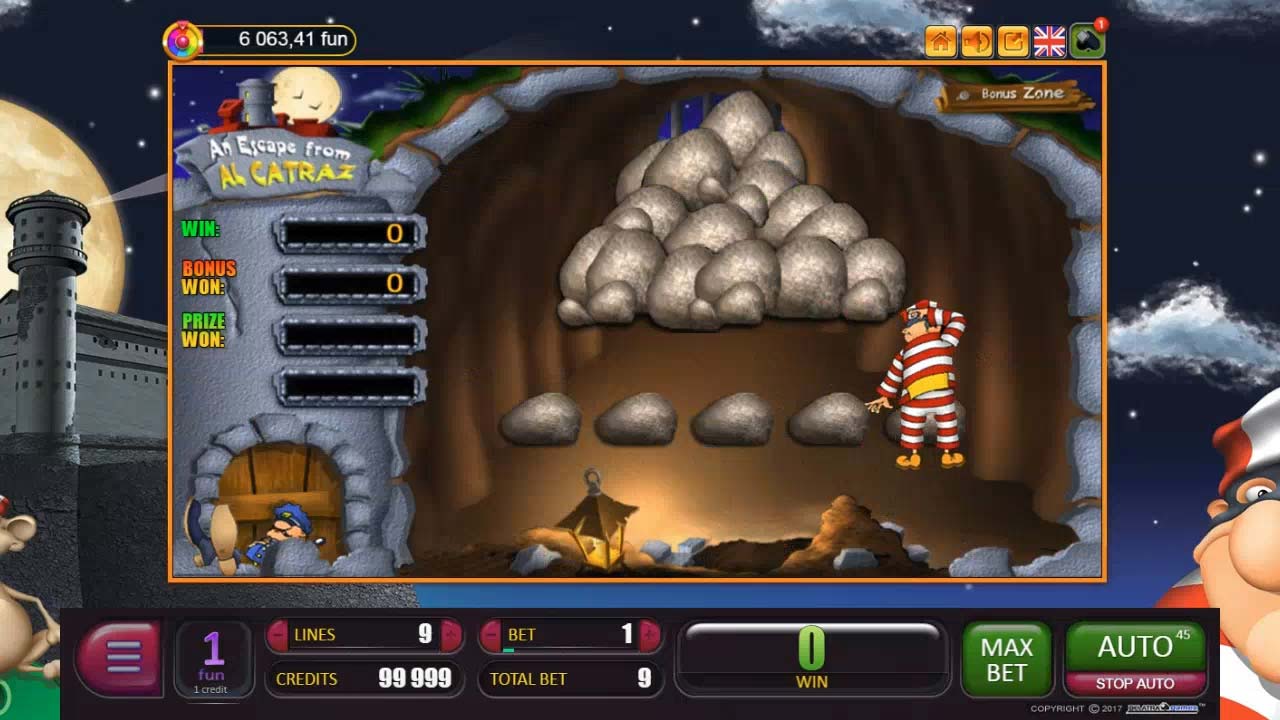 Компания Igrosoft позаботилась в игровом автомате An Escape From Alcatraz о графических символах и музыкальном сопровождении, которое позволяет перенестись во время «золотой лихорадки» и гангстеров.