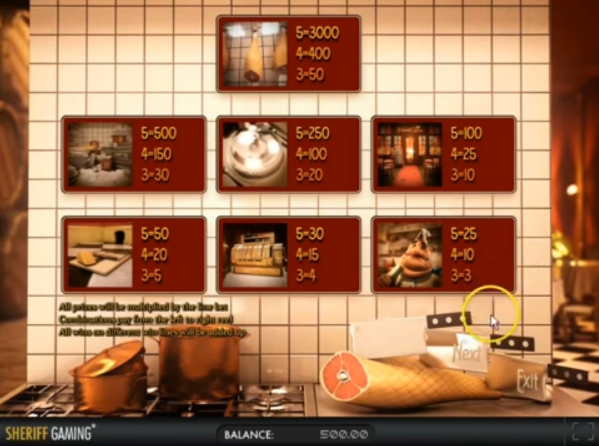 Этот игровой аппарат оформлен в виде небольшого местного ресторанчика и имеет такие игровые качества: