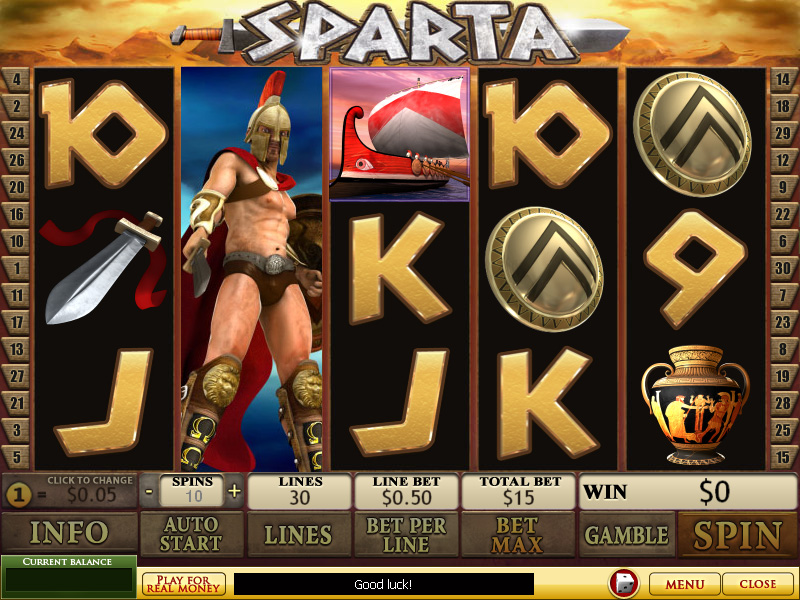 В качестве однорукого бандита автомат «Sparta» попал в казино в 1996 году и после того, как азартные игры на деньги были запрещены, этот аппарат вошел в двадцатку популярнейших слот-машин онлайн заведений.
