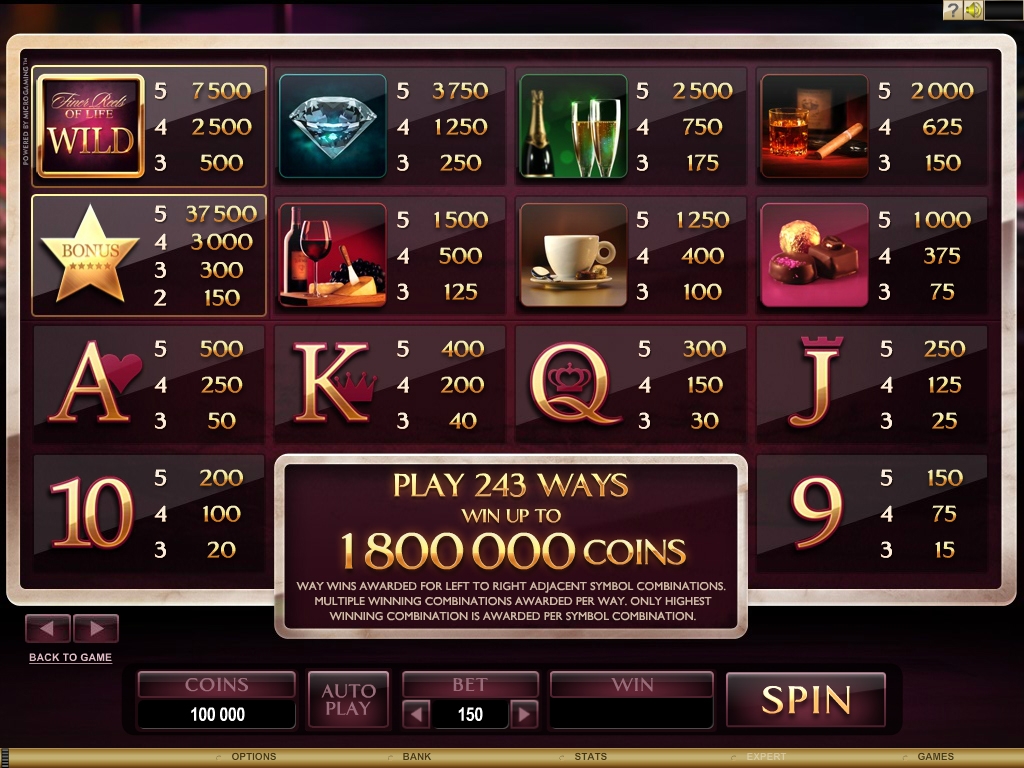 Отправляйтесь в страну роскоши, прекрасных изысканных подарков и вкуснейших блюд вместе с автоматом «The Finer Reels of Life», который был разработан компанией «Microgaming».