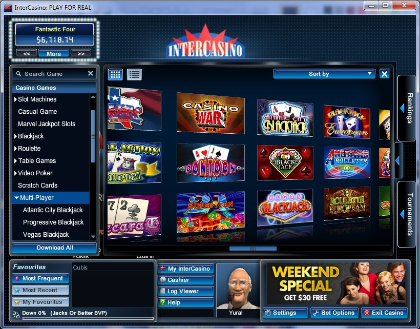 Сейчас используются две версии игр 4. и 5.0. Ясно, что версия 5.0 является более новой, но она имеется только в 2 игорных заведениях. Также можно выбрать живую игру с дилером от компании Cryptologic, но программу нужно скачать на свой компьютер.