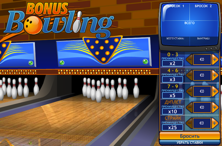 Аркадная игра Bonus Bowling довольно часто представлена как спортивный симулятор. Например, AroundtheWorldBonusBowling. Эта игра представлена в виде боулинга, вы ставите на то, сколько упадет кегель за 2 броска. Минимальная ставка равняется одному доллару, ее можно разделить по 10 центов. Это способствует развитию всевозможных стратегий, что, безусловно, находит одобрение среди мыслящих игроков.