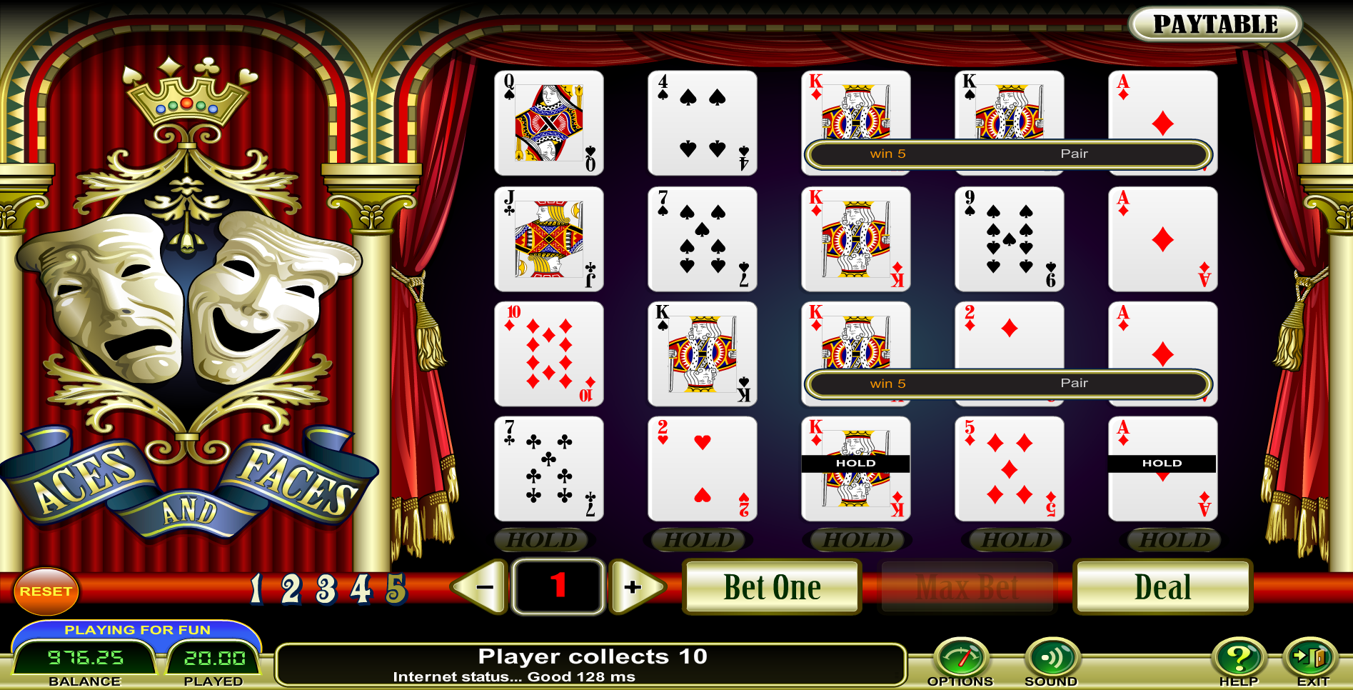 Когда же выпадает флеш рояль, ни в коем случае не удваивайте, а просто заберите деньги.