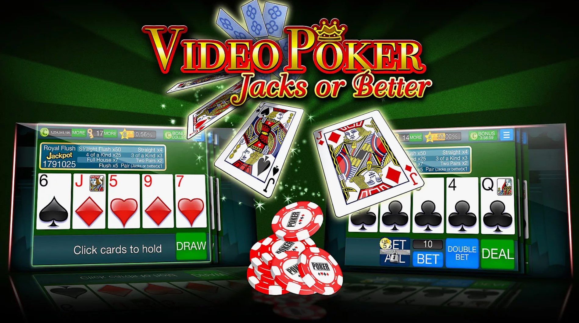 В Валет и выше надежный банкролл равен 3-4 выплатам за флэш-рояль. В двойной бонусной игре он должен приравниваться 3,5 выплатам за флэш-рояль (как минимум) из-за удвоения выигрыша.