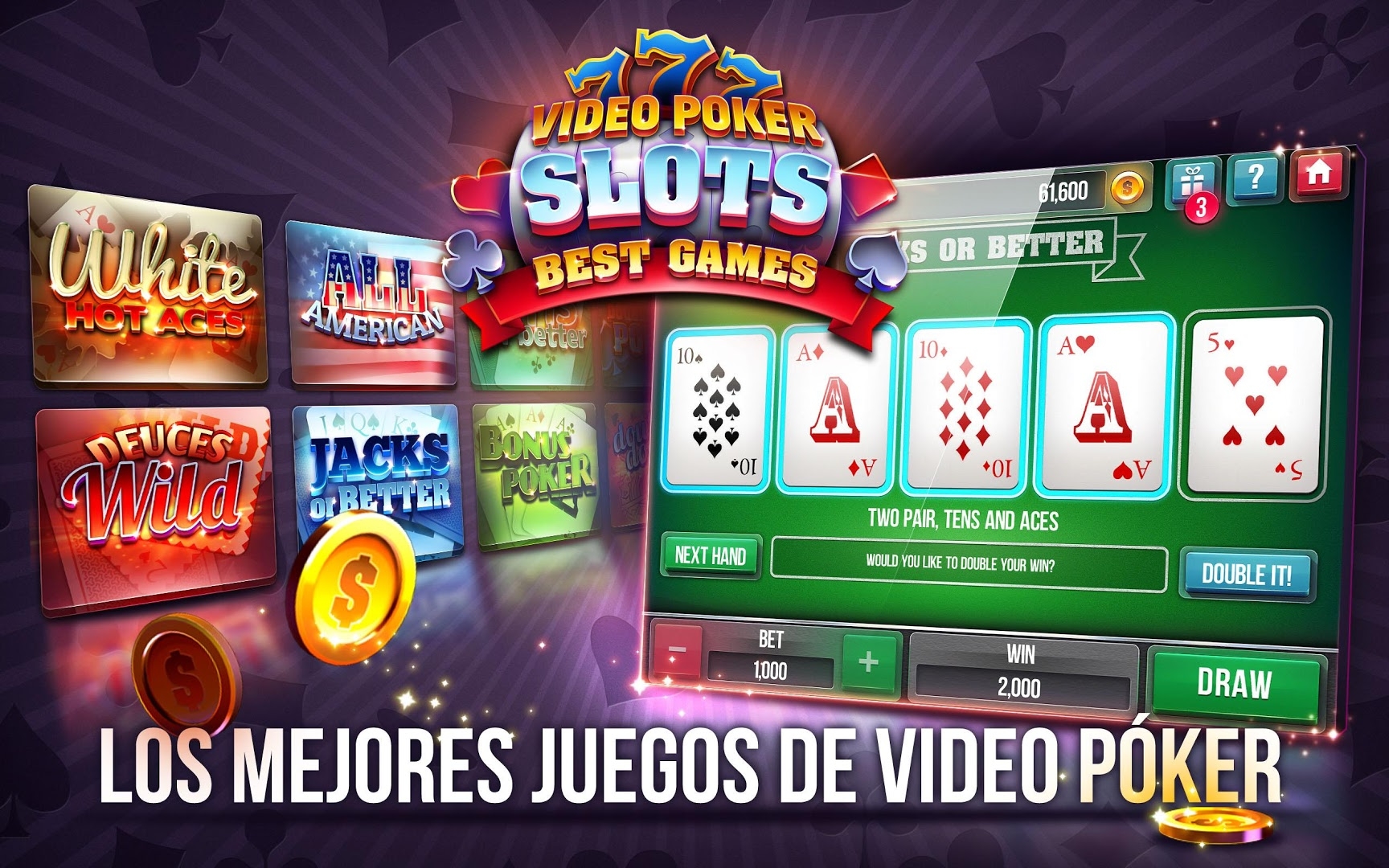 - Джек-поты больших размеров. Наверное, одной из главных причин, почему люди вообще начинают играть в видеопокер, являются огромные джек-поты. Даже если ставить по пять монет, то у вас будет шанс выиграть четыре тысячи. Джек-поты прогрессивного типа будут еще больше. Иногда их размеры достигают сотен тысяч долларов.