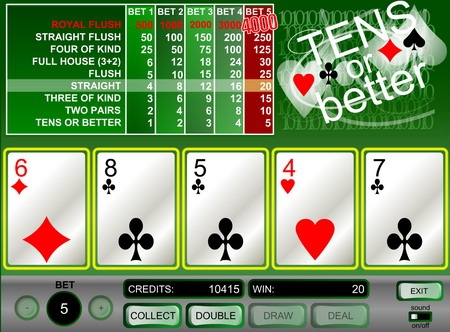 Интерфейс этого автомата прост, удобен и, даже можно сказать, дружественен по отношению к игроку. Таблица по всем возможным покерным комбинациям расположена в верхней части игрового поля «Десятки или выше» . Сразу под ней имеется экран с картами игрока, еще чуть ниже информационные поля, где можно проверить свою текущую ставку, и сколько было выиграно денег в предыдущем раунде. Еще пять кнопок «Hold» предназначены для фиксации карт в руке.