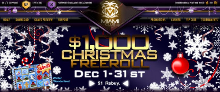 Фри-ролл «Рождественский подарок» на $1000 в Miami Club Casino